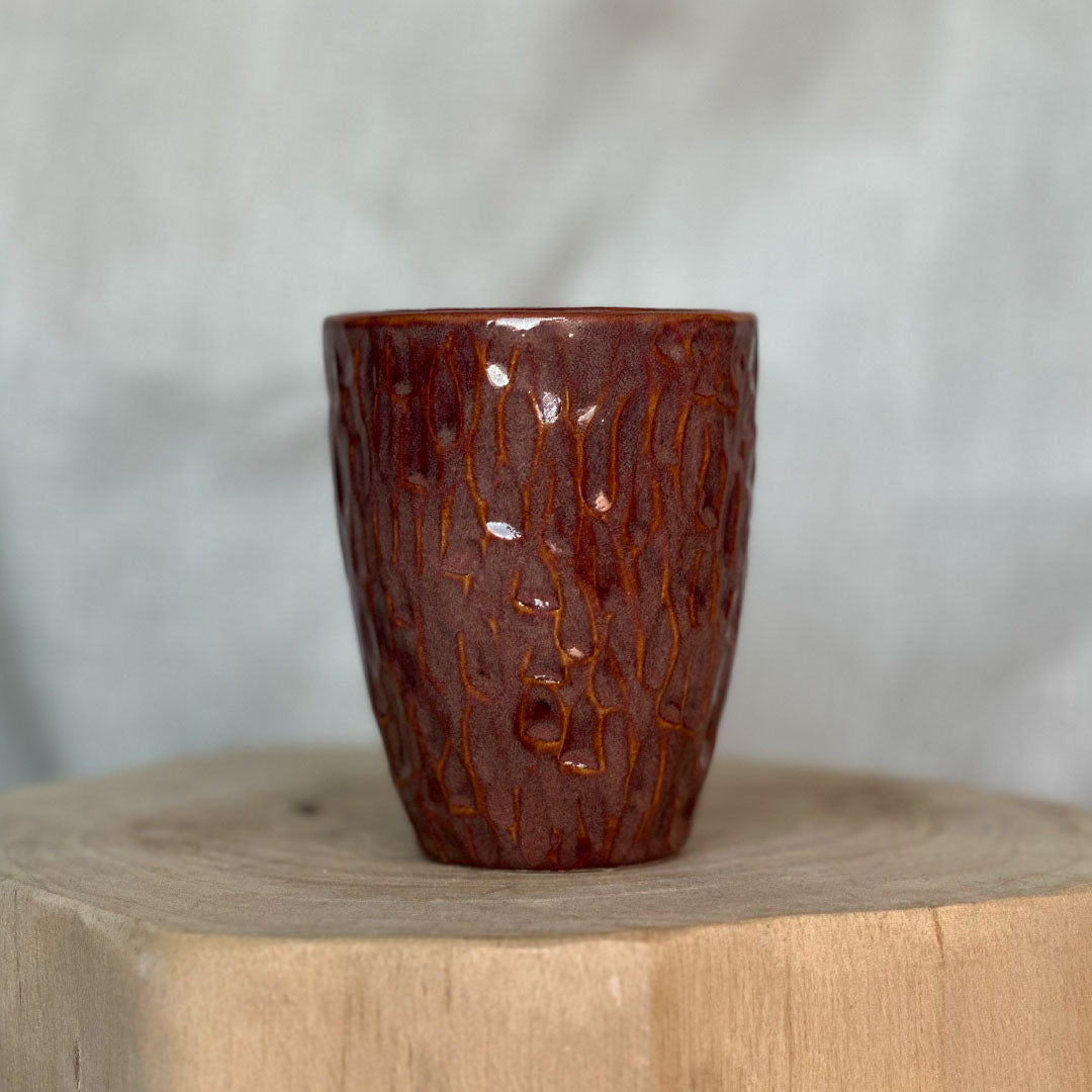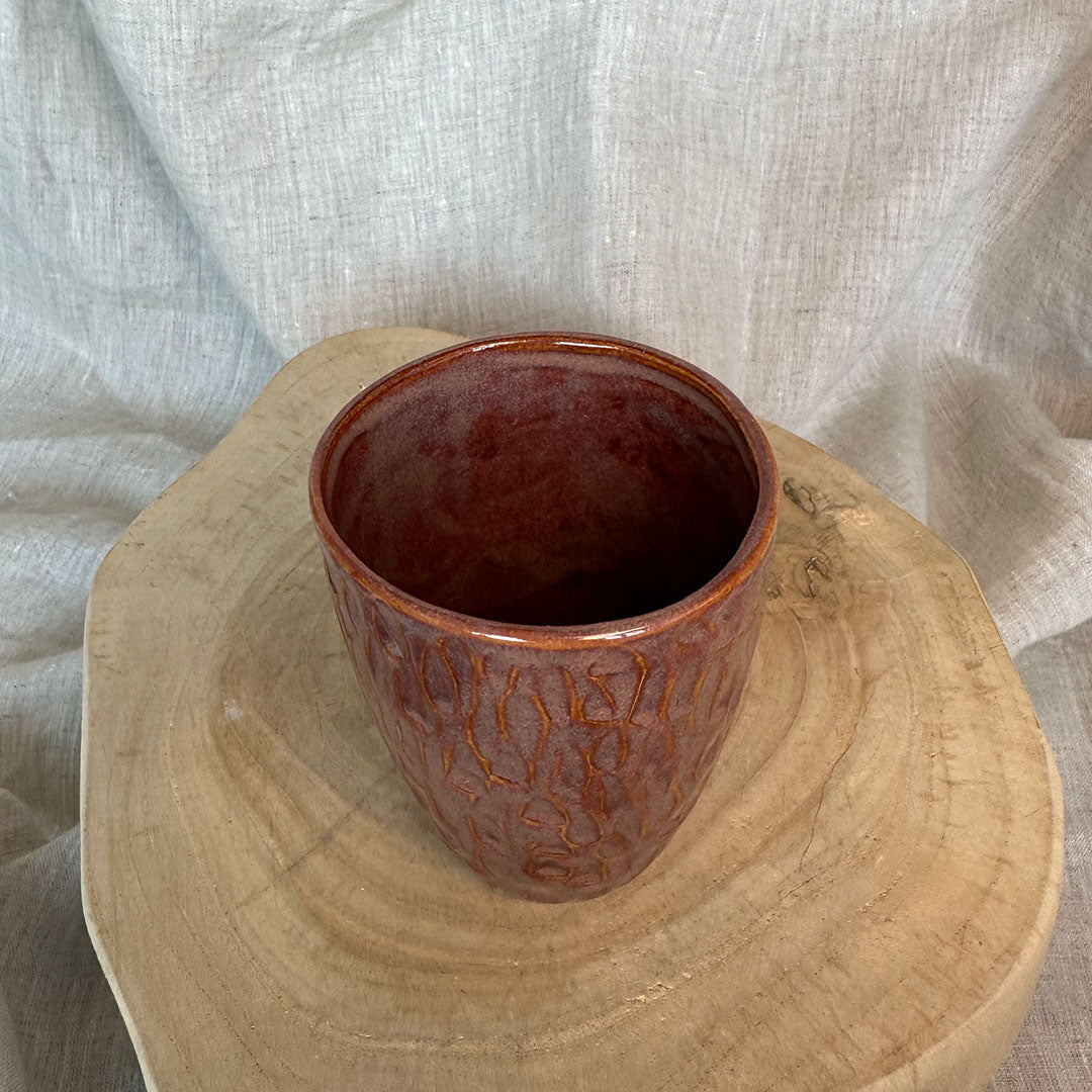 Ontdek de Koffiekop Joka. 'Joka' betekent 'slang' of 'draak' in het Swahili. Deze mok heeft iets magisch door de unieke textuur in prachtige paars/rode tinten