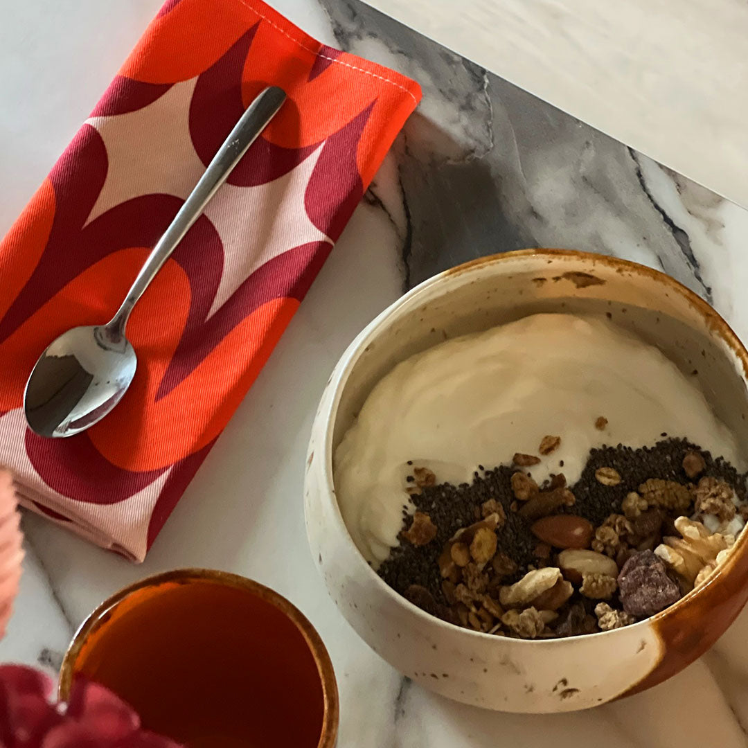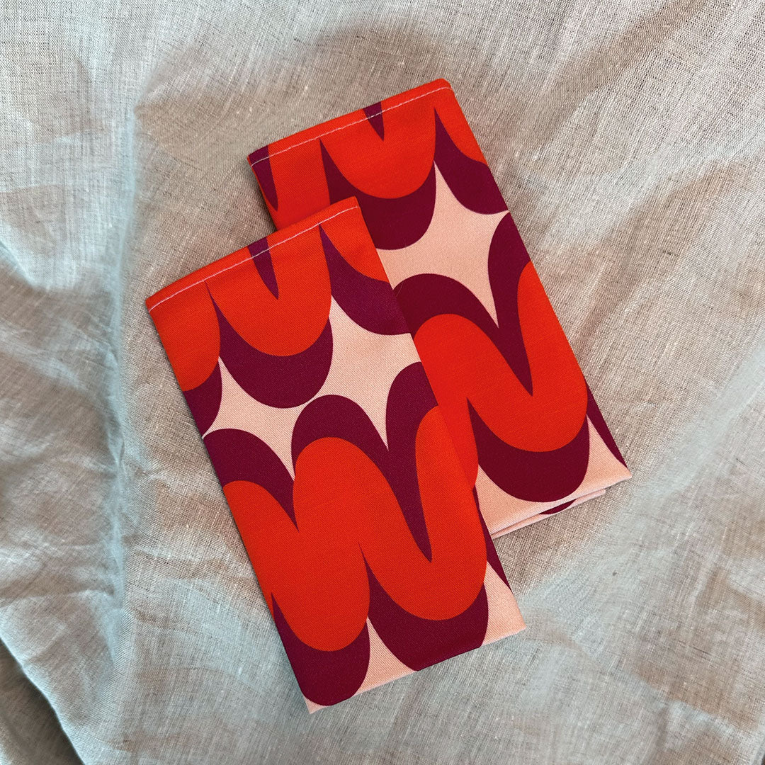 Ontdek onze Servetten Mawimbi Joto. Geïnspireerd op de zonsondergang. Deze opvallende servetten zijn een echte eyecatcher tijdens jouw etentjes.