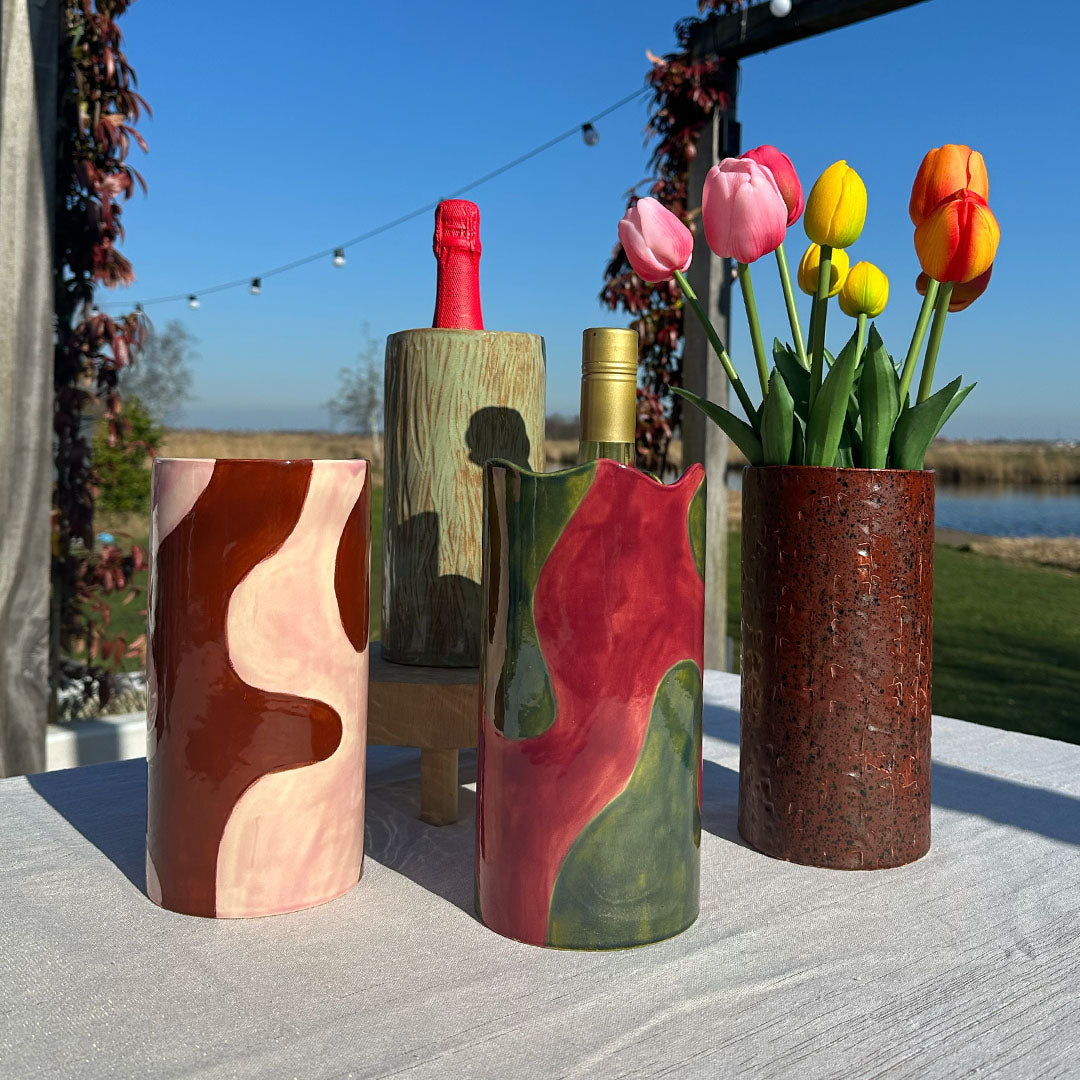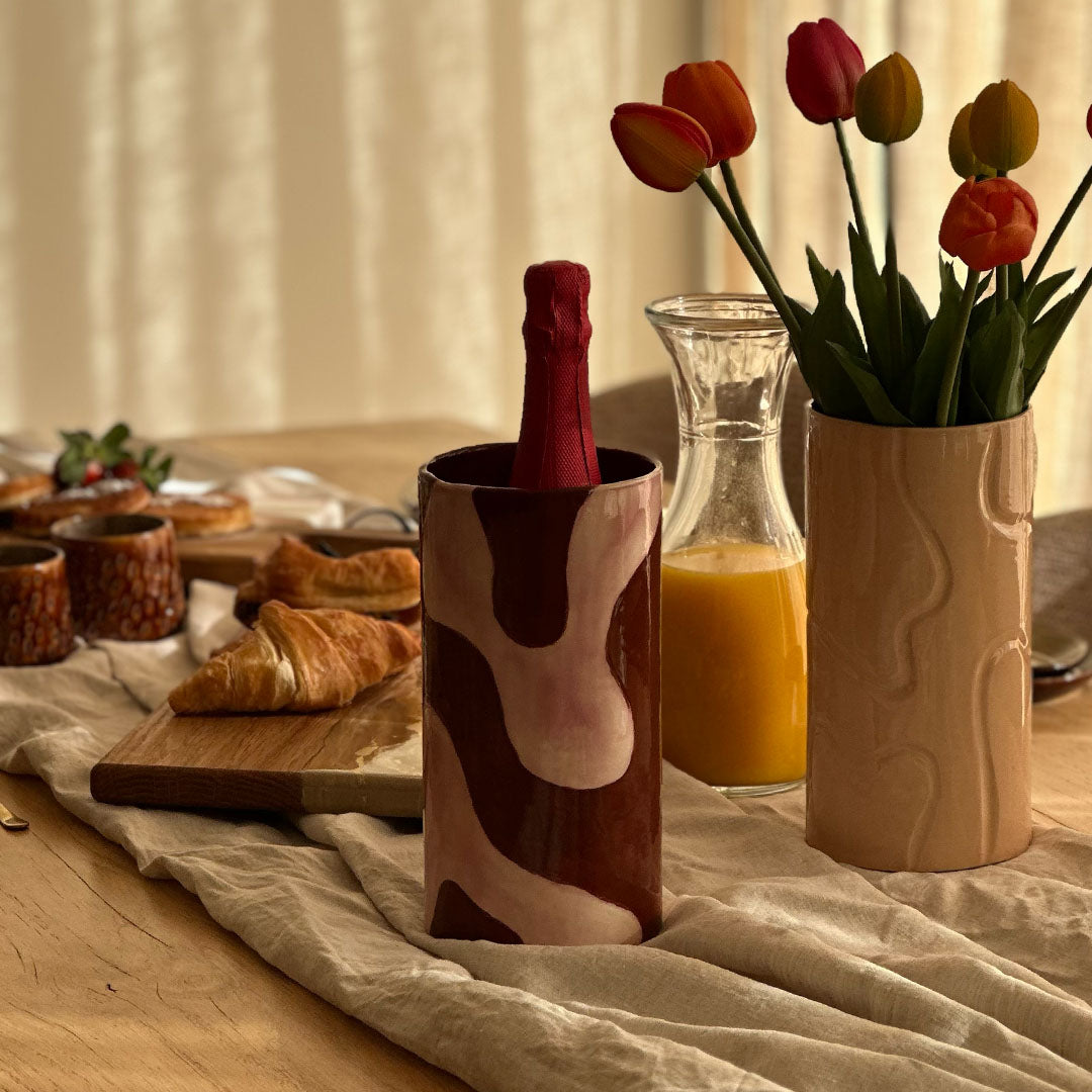 Ontdek de Wijnkoeler Lumaya in de kleuren bruin en roze.