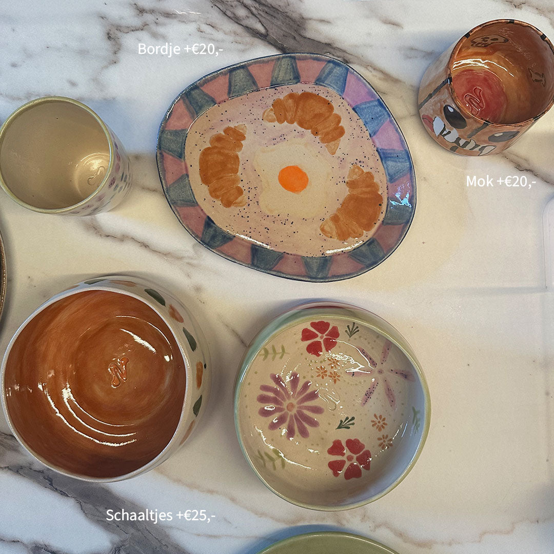 Zin in een gezellige middag of avond vol creativiteit? Schilder jouw eigen keramiekstuk in mijn studio aan de rand van Amsterdam (Driemond). Je werk wordt geglazuurd & afgebakken.